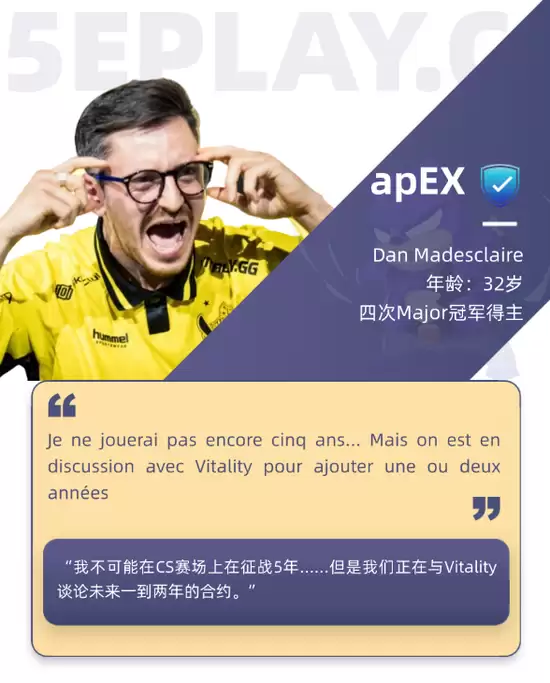 Vitality队长apEX访谈:讨论续约1-2年可能,坦言难再战五年