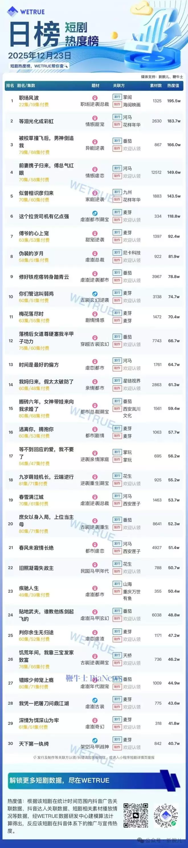 3月23日短剧热度:《职场风波》夺冠,大盘破4200万