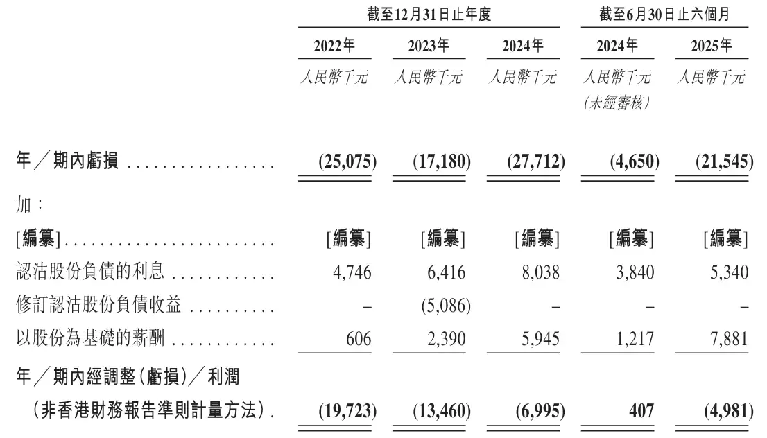 此外,根据经调整净亏损口径,白鸽在线在2022年、2023年及2024年的亏损额分别为1972万元、1346万元和700万元;2025年上半年的经调整净亏损为498万元。