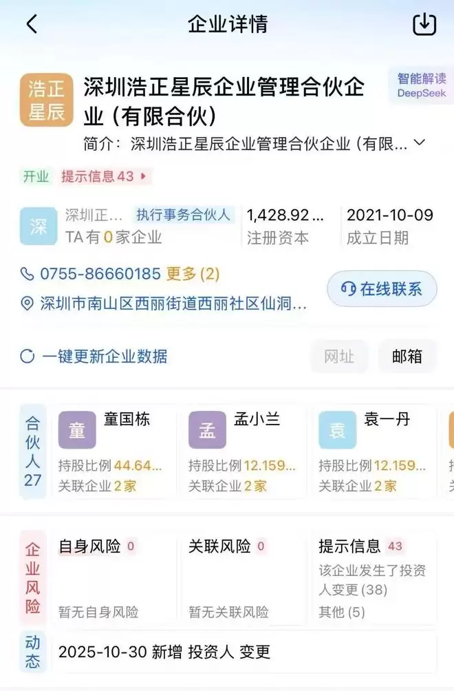 深圳浩正星辰企业管理合伙企业出资结构(图源/爱企查)