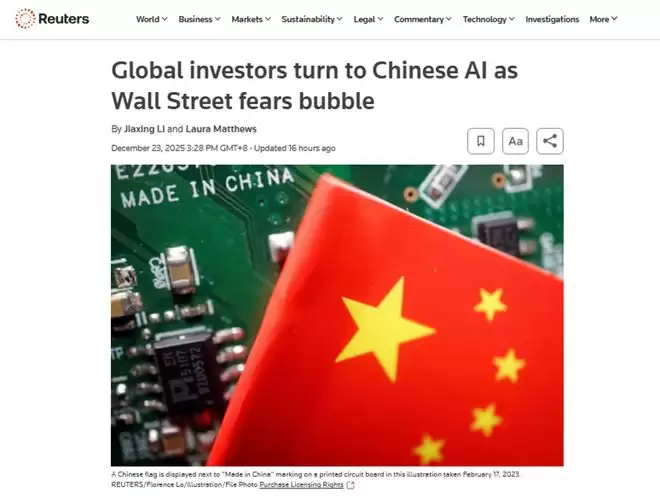 【环球网财经综合报道】路透社近日报道指出,全球投资者正越来越看好中国的AI企业。他们期待着下一个“DeepSeek”的出现,并寻找更多元化的投资机会,而对美国科技行业潜在投机泡沫的担忧也在增加。海外投资者观察到,在加大对人工智能芯片制造商的支持力度下,中国正在迅速缩小与美国的技术差距。