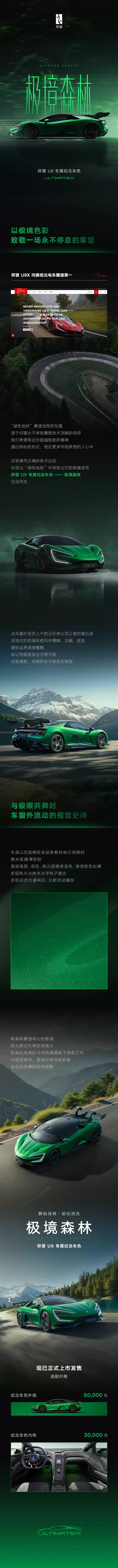 仰视U9“极境森林”专属色发布,售价188万元限量发售