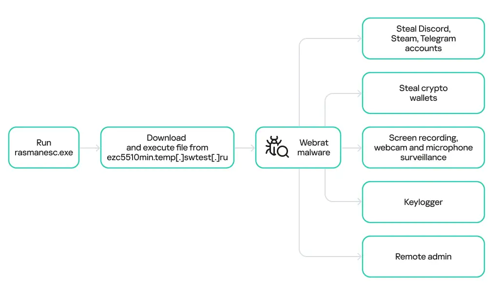 Webrat最早出现于2025年初,当时主要针对普通用户。攻击者最初将恶意软件隐藏在《Rust》《反恐精英》《Roblox》等热门游戏的“作弊工具”或破解软件中。但从9月起,该组织开始转向更具技术性的目标。
