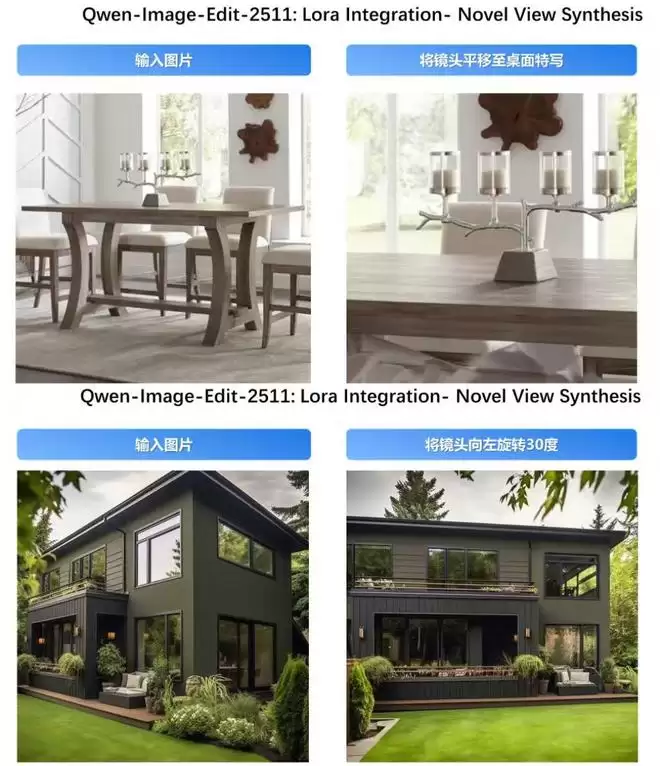 在视角调控方面,用户还可调用新视角LoRA,直接以同一主体为基准生成不同拍摄角度下的图像,可减少重复拍摄与人工调整角度所需成本。