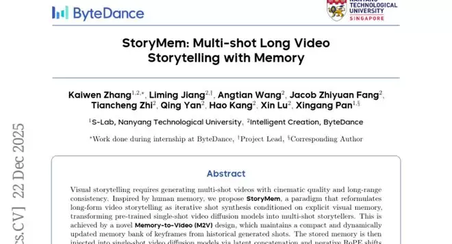 这项由南洋理工大学S-Lab实验室与字节跳动智能创作团队合作完成的研究于2024年12月发表,论文标题为"StoryMem: Multi-shot Long Video Storytelling with Memory"。研究团队由张凯文、江黎明、王昂天等多位研究人员组成,其中江黎明担任项目负责人,潘新刚教授为通讯作者。感兴趣的读者可以通过arXiv:2512.19539查阅完整论文。