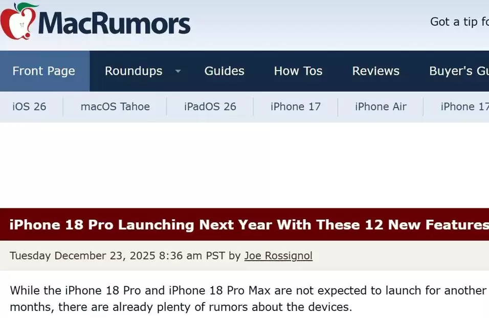 【环球网科技综合报道】12月24日消息,据外媒macrumors报道,尽管距离苹果下一代旗舰智能手机 iPhone 18 Pro 与 iPhone 18 Pro Max 正式发布尚有时日,但关于这两款设备的具体信息已逐步浮出水面。