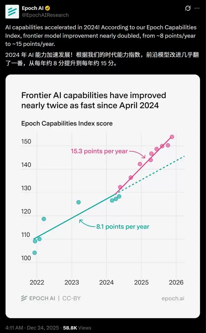 【新智元导读】Epoch AI年终大盘点来了!出乎意料的是,AI没有停滞,反而变快了。