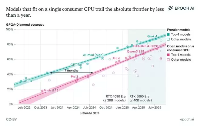短短一年内,前沿AI性能就已在消费级硬件上实现。