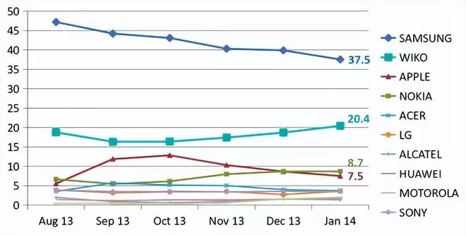 华OV米荣稳居前六,第七名WIKO凭何上榜?