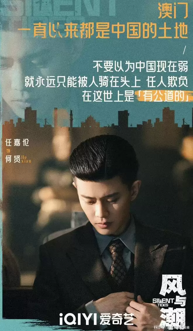 《风与潮》以1941年太平洋战争爆发后的澳门“孤岛时期”为背景,聚焦爱国商人何贤联合各界力量,通过金融暗战、物资输送等智慧博弈。任嘉伦饰演的的银号老板何贤,复古油头+深色西装套装,从只想守着小家过安稳日子,到被时代推着扛起家国重任,精英儒商感十足。蓝盈莹一袭蓝色旗袍搭配大波浪卷发,她用高情商和社交能力周旋于上层社会,彻底打破动荡年代“革命女性只有坚毅面孔”的刻板印象。
