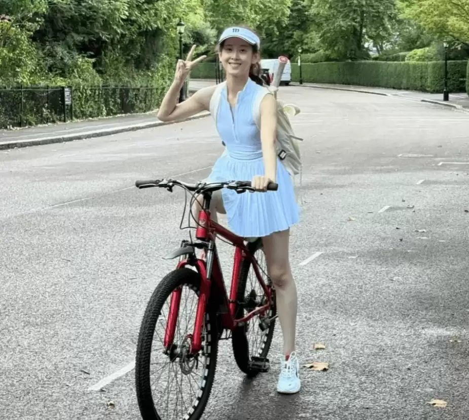 记得今年9月初,章泽天也晒过一次网球照。当时她穿了件白色网球裙,骑着红色单车,背着淡黄色双肩包,里面装着网球拍,对着镜头比耶,看着像个小姑娘似的,素颜出镜还被网友夸“白到发光”、“少女感爆棚”。