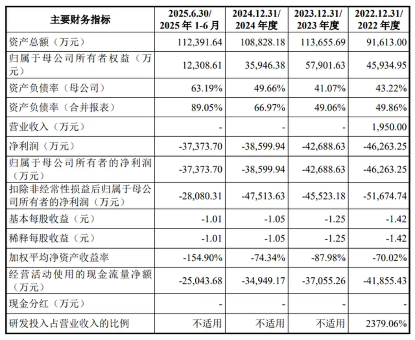 招股书显示,2022年度、2023年度、2024年度及2025年1-6月,信诺维归属于母公司股东的净利润分别为-4.63亿元、-4.27亿元、-3.86亿元和-3.74亿元,持续处于亏损状态。