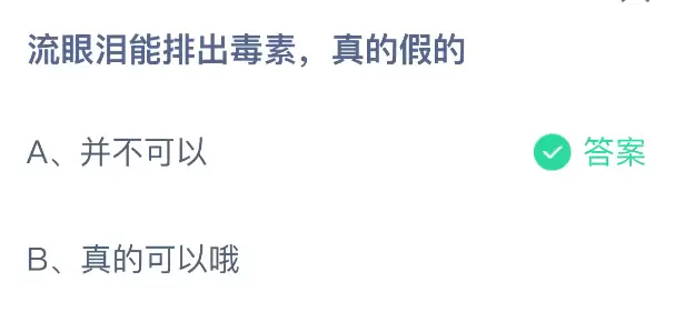 流泪真能排毒吗?支付宝蚂蚁庄园2025年12月25日最新答案