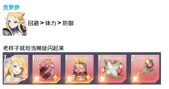 先来说说克罗伊。她在队伍中的定位就是一个纯粹的坦克,装备属性的优先级应该是回避最重要,其次是体力,最后才考虑防御。为什么要这样配呢?因为克罗伊的核心玩法就是靠闪避来生存,如果回避堆得足够高,她在战斗中就能像赌徒一样频繁触发闪避效果,让敌人的攻击难以命中。体力能增加她的生存能力,防御虽然也有用,但相对来说没那么关键。