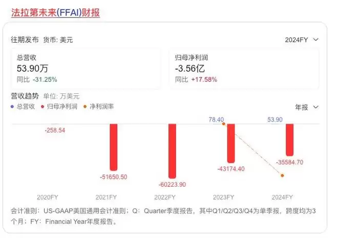 在去年披露2024年全年业绩时,法拉第未来更是在报告指出,“公司可能继续蒙受巨额亏损,因此可能永远无法实现和维持盈利。”