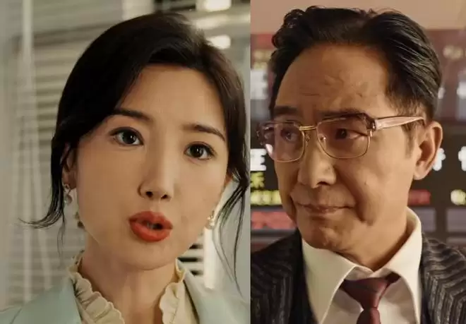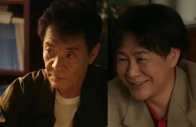而站着的张颂文,故意弯下腰的姿态,还挺像个下属,但挺浮夸的,有些不接地气。