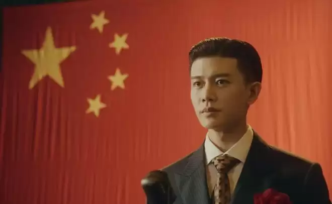 在红艳艳的红旗下、胸前戴着玫瑰、眼神坚定的何贤,完美的把任嘉伦之前呆板和深情的周生辰,给替换了。