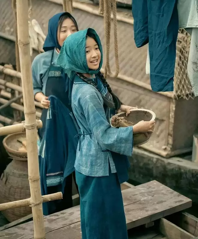 聂子一的外形十分贴合小渔这个疍家女孩角色,眼神倔强,赤脚出镜的造型极具年代感与角色适配度。