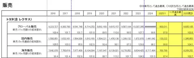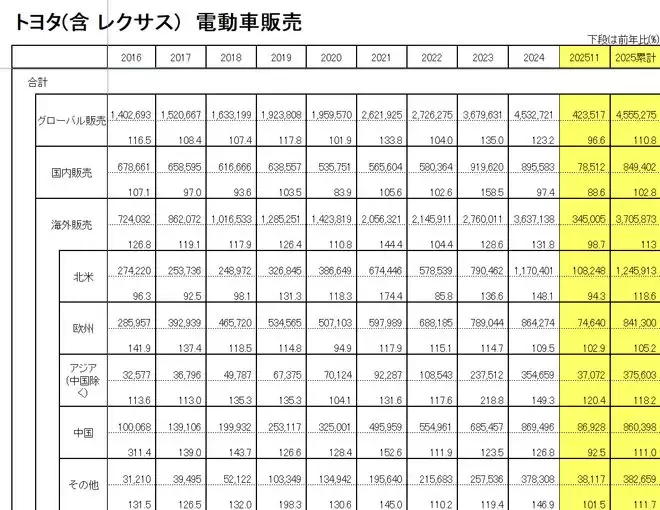 IT之家12月25日消息,丰田汽车今日公布2025年11月全球销量(含雷克萨斯,下同)为900011辆,同比下降2%。这是近11个月以来,丰田全球销量首次转为负增长。