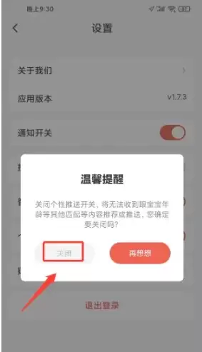 想要关闭编程猫机器人App的个性化推送功能吗?操作其实很简单。首先,打开编程猫APP,进入设置页面,找到“个性化推送开关”并将其右侧的按钮开启。如图所示,随后会弹出一个温馨的提示页面,你只需点击“关闭”按钮即可完成操作。