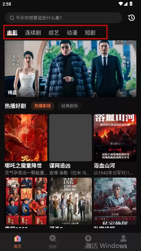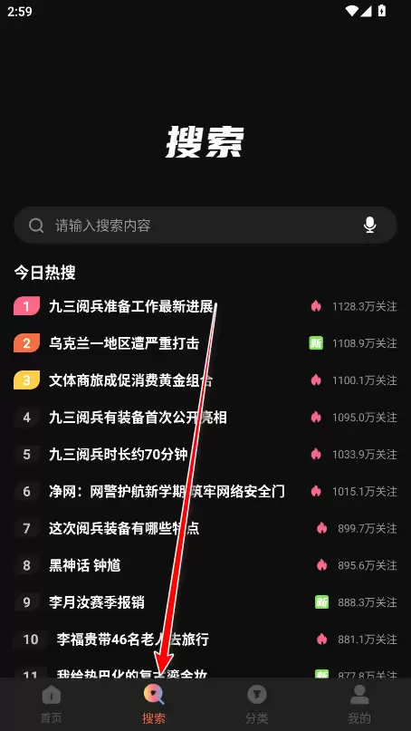3. 点击下方的搜索入口,可以查看当前最热门的搜索内容,紧跟追剧潮流。