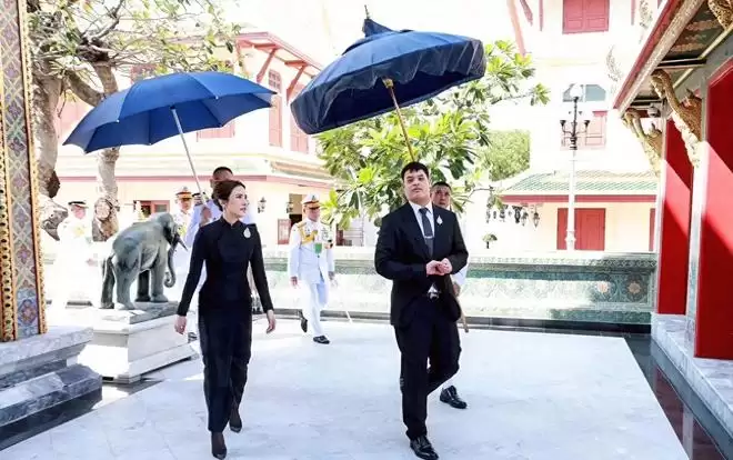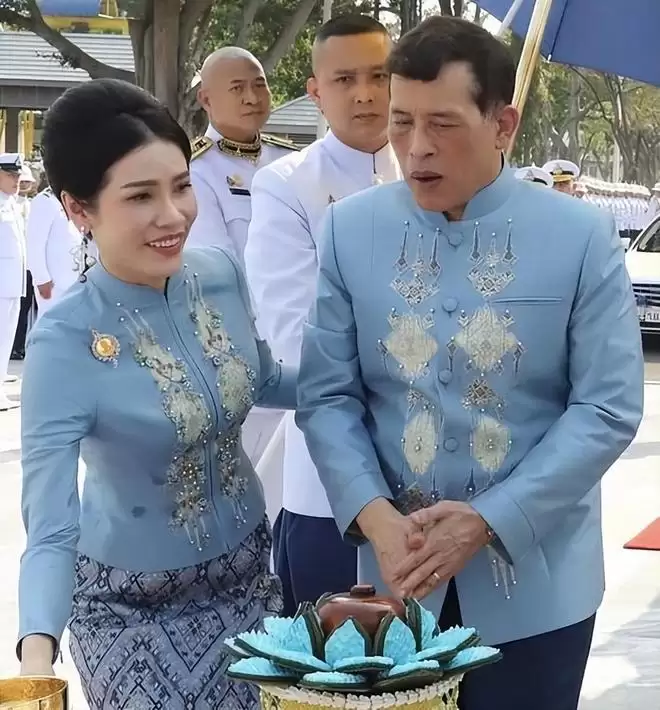 跟泰王穿着情侣装出席公务。
