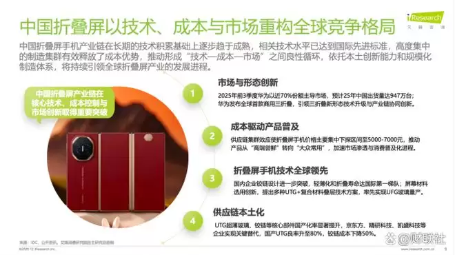 在折叠屏手机硬件发展方面,尤其是核心的铰链与屏幕技术,实现从满足基本功能到追求综合体验的转型,硬件创新从单点突破走向系统工程,推动折叠屏产品摆脱“尝鲜”标签,向可靠、好用且无负担的“主力机”地位加速迈进。