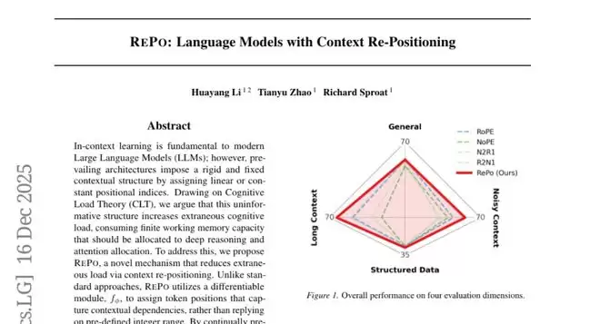 现在,如果让你读一本散乱的书,里面的章节毫无顺序,重要信息被无关内容包围,你会怎么办?大多数人会自然而然地重新整理这些内容,把相关的部分归类,把重要的信息提到前面。但是,当前的大语言模型却无法做到这一点——它们只能按照预设的固定顺序来处理文本信息。这项由日本Sakana AI公司的李华阳、赵天宇和Richard Sproat共同完成的研究,于2024年12月发表在预印本平台arXiv上(论文编号:2512.14391v1),提出了一种名为REPO(Re-Positioning)的创新方法,首次让大语言模型获得了重新组织上下文信息的能力。