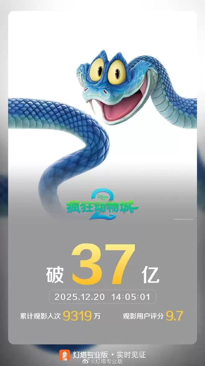 《疯狂动物城2》内地票房破37亿,持续刷新动画电影纪录