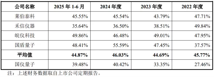 报告期内,国仪量子的综合毛利率分别为27.46%、33.35%、40.42%和39.48%。尽管随着公司经营规模的扩张,毛利率整体有所提升,但仍低于同行业可比上市公司的毛利率均值。