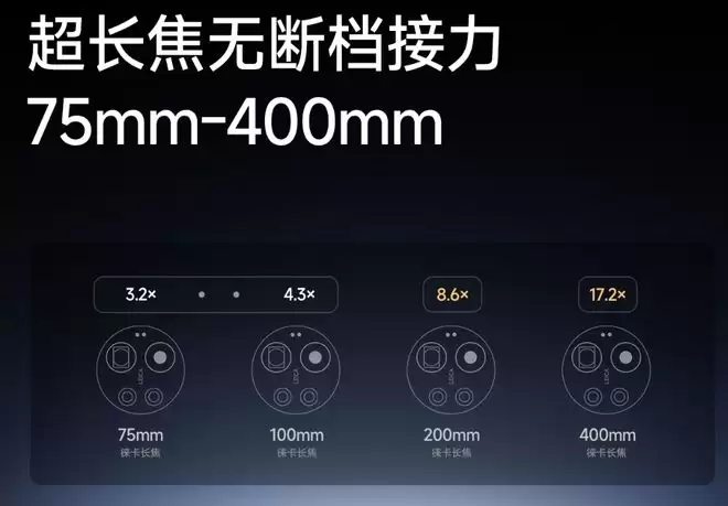 更直白来说,小米用一颗连续光变的长焦镜头,完成了过去四颗长焦镜头的工作。