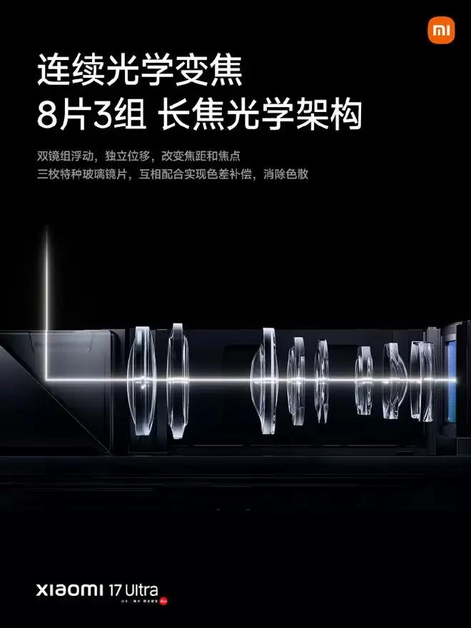 而小米 17 Ultra,实现了行业首款 2 亿像素大底“光学变焦”镜头(HPE),这颗镜头通过创新的内部结构,实现了 75-100mm 焦段的真光学变焦。