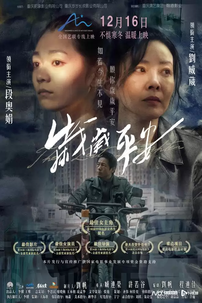 《岁岁平安》由重庆肥象影业有限公司、重庆岁岁长欢影业有限公司出品,由郦连荣、许若谷联合执导,刘威葳、段奥娟领衔主演。该片聚焦一段牵动人心的亲情救赎:母亲李玫因儿子平安身患白血病,赶赴重庆寻找曾经被遗弃的女儿岁岁,期望岁岁能为救治弟弟捐献骨髓。这场带着愧疚与期盼的寻亲之路,不仅让母女俩的命运重新交织,那些被时光掩埋的过往,也在一次次的倾诉与情感交锋中被层层揭开。演员段奥娟也凭借这一角色提名第38届中国电影金鸡奖最佳女主角。