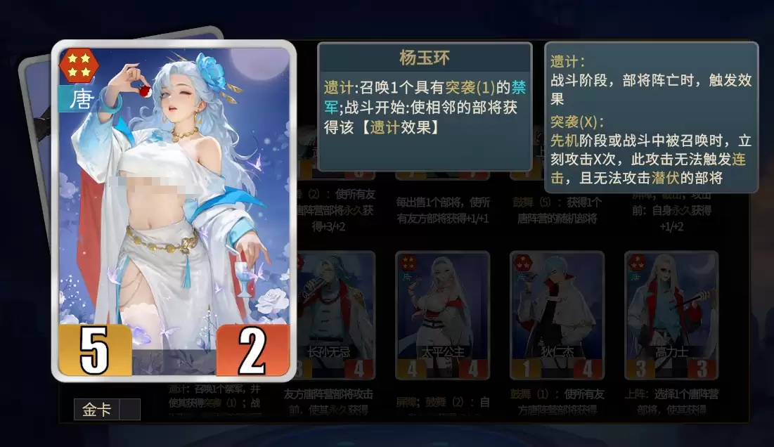 用盛唐阵营与张角搭配也是同样的原理。玩家可上阵多个杨玉环和李秀宁,再配合上玄武可让遗计触发两次的效果,从而召唤出大量的禁军以触发张角的血债。但与妖族召唤不同的是,盛唐召唤对阵营强度有一定要求,因此得上武则天、秦琼和长孙无忌作为保底,不断地为武则天叠加属性,让她能完成最后的收尾工作。最终的阵营为:玄武、杨玉环(两个)、李秀宁、武则天、秦琼和长孙无忌。
