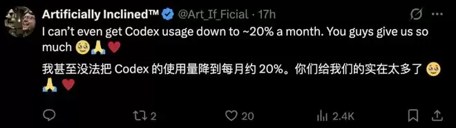 除了推出圣诞版Codex之外,OpenAI准备的节日礼物还包括重置速率限制,并将使用上限提升至平时的2倍,一直到明年1月1日。