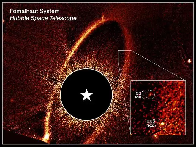 科学家在近期哈勃观测中寻找北落师门 b 时,意外地在该恒星周围相似位置发现了第二个光点。他们将这个新天体称为“环恒星源 2”(cs2)。