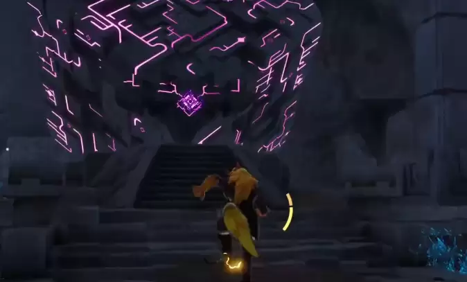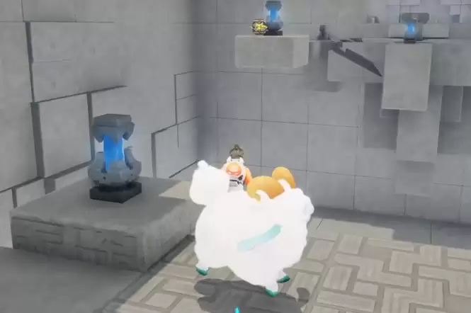 收集完所有光球后,可以开启大门继续前进。前方会出现类似魔方的巨型建筑,周围有许多高台。这时可以变身为其他能飞行的宠物,快速抵达指定位置,之后点击交互按键。接着又会开启一扇大门,继续向前能看到里面有很多宝箱,靠近即可收集。挑战过程中,建议多选择火属性的宠物,借助它们的点火能力,能帮助玩家清除地宫里的障碍。