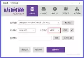 2. 在优启通主界面中,选择U盘对应的盘符,然后点击“开始制作”按钮。