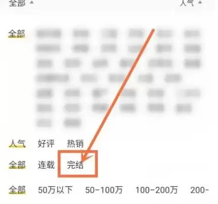 接着,你会进入全部作品的分类筛选页面。在这里,找到并选择“完结”状态标签,整个书库里的完结小说就都会呈现给你了。