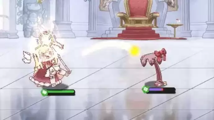 埃尔芬的普通攻击会向距离最近的目标射出魔力弹,对单一目标造成相当于55%魔法攻击力的伤害。强化后的普攻在使用后,埃尔芬有一定概率在攻击时偷偷拿出蛋糕吃掉,偷吃蛋糕可以瞬间回复自身50%的SP值。