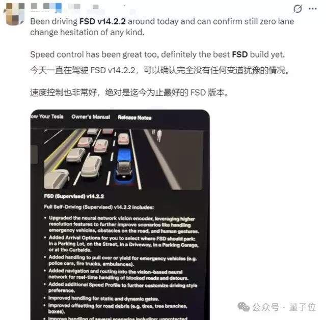 当然,FSD v14.2.2不是独属于Jim Fan的专属礼物。在陆续收到新版FSD推送后,特斯拉车主们的反馈也迅速刷屏——一句话总结:玩疯了