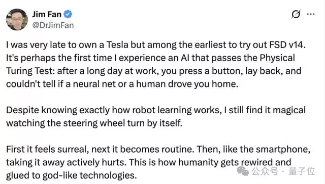 为特斯拉「颁发」这一殊荣的并非别人,而是英伟达大名鼎鼎的机器人主管——Jim Fan。