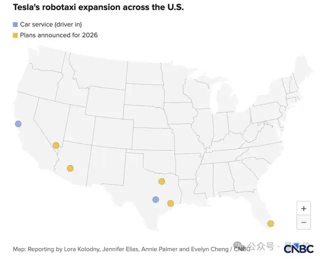 相比之下,特斯拉的运营版图仍然相当有限,目前只覆盖德州奥斯汀以及旧金山湾区的部分区域。