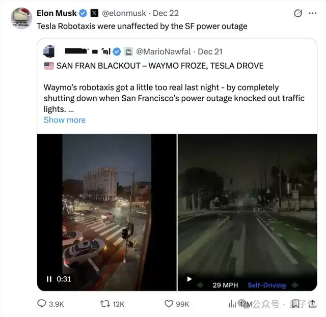 值得一提的是,在前段时间旧金山停电事件中,马斯克还贴脸开大嘲讽Waymo。