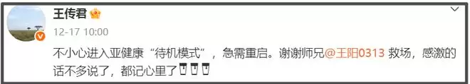 目前,王传君对外表示身体状态亚健康需要待机,并没有公开具体的病情。但从他还能露面参加商业活动,想来病情处于可控之中,只是无法拍戏。