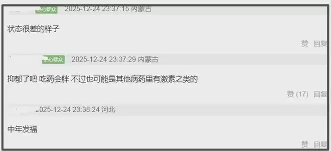 看到王传君的变化,有网友表示他可能真的生病了,并不是因为嫌弃新剧番位被压跑路。根据其四肢纤细其他部位肥胖的情况,有网友称这种充气状很像向心性肥胖的状态,都是腰围增粗肚子突出。