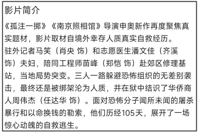 继《孤注一掷》和《南京照相馆》之后,申奥带来了全新力作《用武之地》,影片取材自境外幸存人员真实自救经历。导演和片方很自信,上映前一周就开启了点映,可惜点映的口碑并不好。