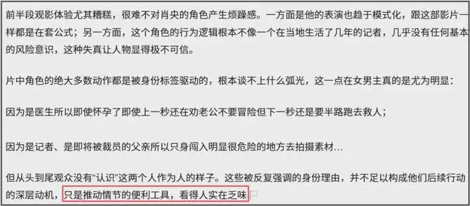 导演用了大量的血腥镜头去展现战争的残酷,但却没想到让观众先生理不适了。与此同时,肖央饰演的男主人设实在“太蠢了”。为了推进剧情发展,男主做出了太多没有动机和逻辑的行为,成了典型的工具人。