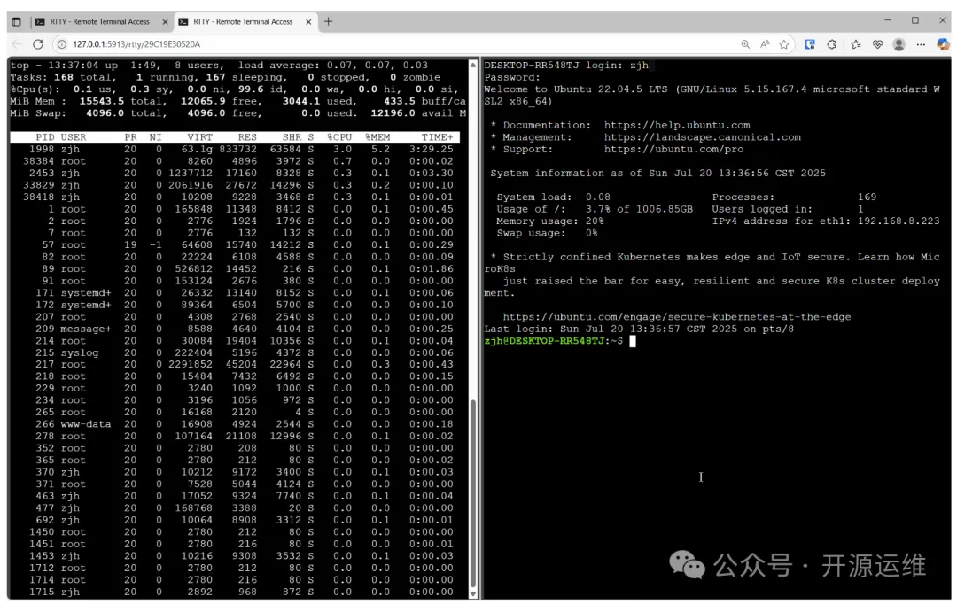 rtty 这个工具让你只需在设备上运行一个轻量客户端,就能通过任何电脑或手机的浏览器打开网页来操作设备命令行,体验接近本地 SSH。