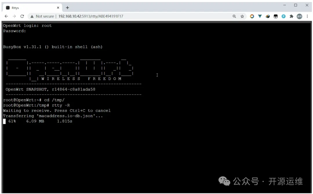 rtty 是一款轻量级的远程终端访问工具,包含客户端和服务器两部分。你在设备上运行一个很小的客户端程序后,就可以通过任何电脑或手机上的浏览器打开网页,直接操作设备的命令行界面。